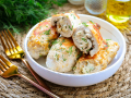 Приготовленной смесью залейте курицу с овощами. Готовьте курицу с сельдереем на сковороде еще 5-6 минут и выключайте плиту.