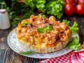 Запекайте в духовке 15-20 минут при температуре 180-185 градусов. После достаньте и посыпьте тертым сыром. Снова отправьте на несколько минут в духовку - до расплавления сыра. Если вы хотите получить мукрам с корочкой сыра, то сразу посыпьте блюдо тертым сыром перед запеканием.