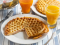 Уберите бутерброды с беконом в аэрогриль и готовьте 5 минут при температуре 180 градусов, чтобы бекон немного поджарился.