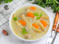 В тарелку с горячим супом добавьте свежую зелень.