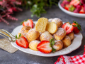 Переложите их на блюдо, немного остудите и посыпьте сахарной пудрой.