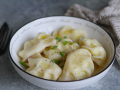 Выловите готовые вареники на тарелку.