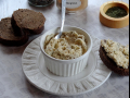 У меня по традиции - кусочек свежего хлеба с семенами льна и сливочное масло с чесноком и базиликом.