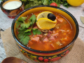 Солянка с картошкой в казане получается очень сытной, наваристой и вкусной! Разлейте её по тарелкам. Положите в каждую тарелку ломтик лимона, посыпьте зеленью, и если любите, то добавьте сметану!