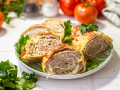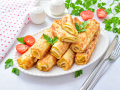 Начните сворачивать лаваш с широкой стороны в плотный рулет. Чтобы рулет не разваливался, свободный край должен быть смазан майонезом.