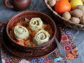 Листы мантоварки или, как в моем случае, корзину мультиварки смажьте маслом. Уложите в нее рулеты. Готовьте ханум с фаршем и капустой на пару примерно 45-50 минут.