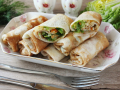 В центр блина выложите начинку - 1.5 ст.л. Сверните блин удобным для вас способом, конвертиком или в виде рулета.
