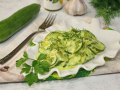 Огурцы нарежьте тонкими кружочками, можно воспользоваться специальной теркой. Добавьте к ним пару щепоток соли, щепотку сахара, перемешайте аккуратно и пока отставьте в сторонку.