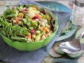 Салат посолите по вкусу. Заправьте лимонным соком и растительным маслом. Перемешайте все ингредиенты.
