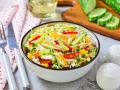 Салат из свежих кабачков и огурцов готов. Подавайте на закуску или в качестве гарнира.