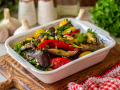 В моем аэрогриле перец был готов через 18 минут, в процессе запекания я его не переворачивала. Вы же ориентируйтесь на внешний вид вашего перца и особенности аэрогриля. При необходимости переверните его один-два раза и увеличьте время приготовления.