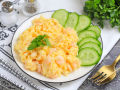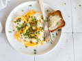 Яичница с индейкой готова. Щедро посыпьте её нарезанной зеленью и подавайте к столу.