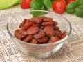 Клубника нужна спелая, но крепкая. Ягоды не должны быть переспелыми, водянистыми. У клубники удалите хвостики, промойте в воде, переложите в дуршлаг. Нужно, чтобы максимально стекла вода с ягод. После дуршлага переложите ягоды на чистое полотенце, чтобы оно впитало в себя часть влаги. Для сушки можно взять как крупные ягоды, так и маленькие - высохнут быстрее.