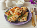 Впрочем, блины с сулугуни и зеленью можно завернуть и обычным способом, на вкусе это никак не отразится.