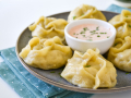 Аппетитные, сочные и вкусные пельмени с минтаем готовы. Подавайте со сметаной, соусами.