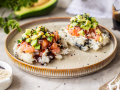 Роллы с форелью и творожным сыром готовы, но если есть желание, фантазия и какие-либо подходящие ингредиенты, то сопроводите ими роллы.