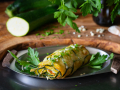 Рулет из кабачков с крабовыми палочками нарезать острым ножом.