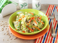 Морковь натрите на терке, а лук мелко нарежьте. Выложите в сковороду с растительным маслом.