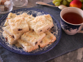 Обратите внимание: структура теста неоднородная и выглядит оно немного недомешенным. Тесто с непромешенными кусочками масла и остатками муки. Это нормально для такого теста. Если по какой-то причине, ну, возможно, вы в первый раз замешиваете такое тесто, вы его перемесили и тесто получится жидковатым, можно добавить немного муки, не более 30 г.