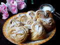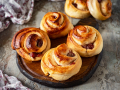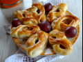 Смазать булочки яйцом. Можно оставить на 10 минут, а после поставить в горячую духовку или сразу поставить в холодную духовку и включить ее на 180 градусов.