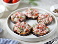 Подаём битые баклажаны с помидорами и сыром в тёплом виде, по желанию их можно украсить свежей зеленью. Приятного аппетита!