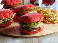 Булочки разрезать пополам (можно подсушить на сковороде или гриле), смазать соусом.