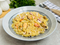 Пасту с креветками и маскарпоне разложите по тарелкам и подавайте к столу в горячем виде. Приятного аппетита!