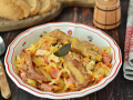Для капусты всегда беру мясо с прослойками сала или ребрышки, так блюдо выходит намного вкуснее. Со специями можно "играть" по вкусу, соль у меня изумрудная.
