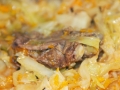 Закрываем казан крышкой и готовим на минимальном огне до мягкости капусты.