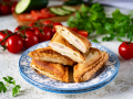 Всё готово! Багет, запеченный с начинкой в духовке, подавайте горячим.