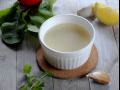 В стакан блендера поместите базилик, влейте масло, лимонный сок, добавьте соль.