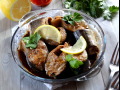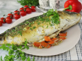 Выпекаем гольца целиком в духовке, разогретой до 180 градусов. У меня голец небольшой, запекался около 30 минут. За время запекания я дважды поливала его растопленным маслом и соком, которые образовались в противне. Аромат от сливочного масла, цедры, самой рыбы просто сводит с ума...