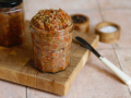 Хорошо перемешайте все ингредиенты. Чашу затяните пищевой пленкой или переложите баклажаны в герметичный контейнер и уберите в холодильник минимум на 15 минут.