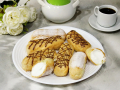 Банановые эклеры (с банановым кремом) надо убрать на пару часов в холодильник. Крем за это время отлично стабилизируется.