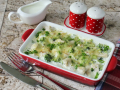 Форму для запекания смажьте маслом и выложите брокколи со стручковой фасолью.