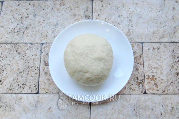 После выложите на стол, присыпанный мукой, и замесите крутое, но мягкое и эластичное тесто. Накройте его пищевой пленкой и дайте отдохнуть 20 минут.