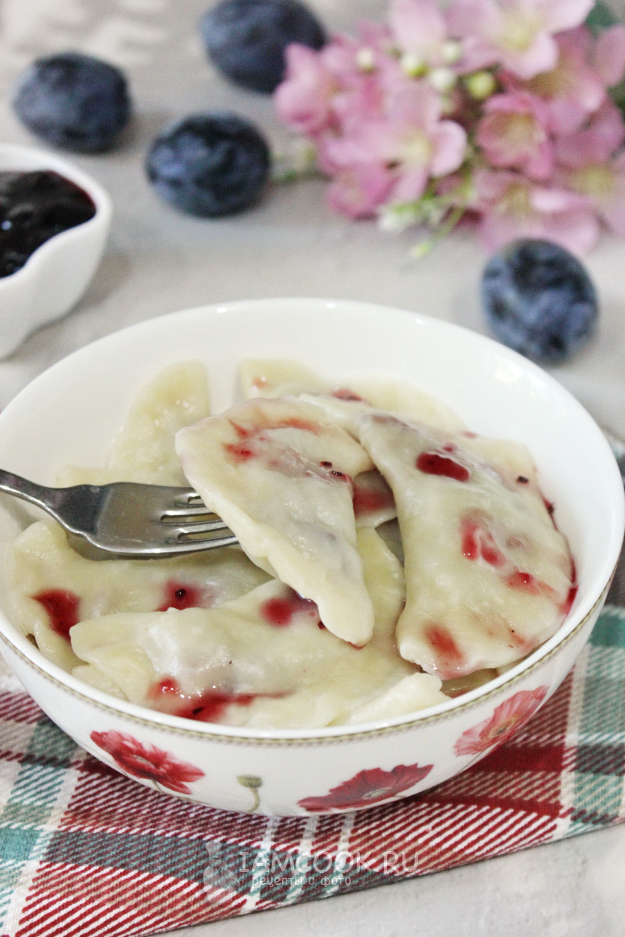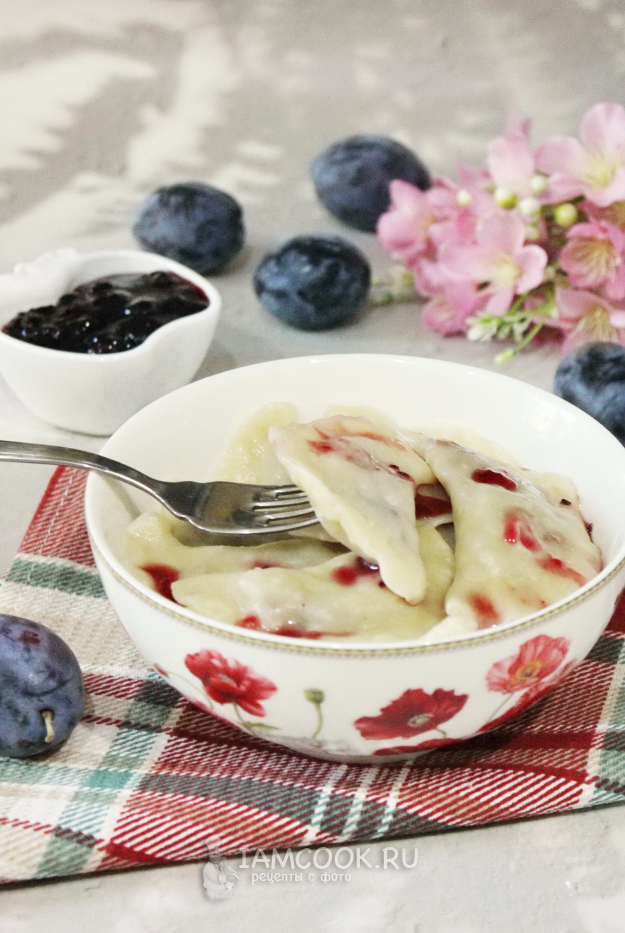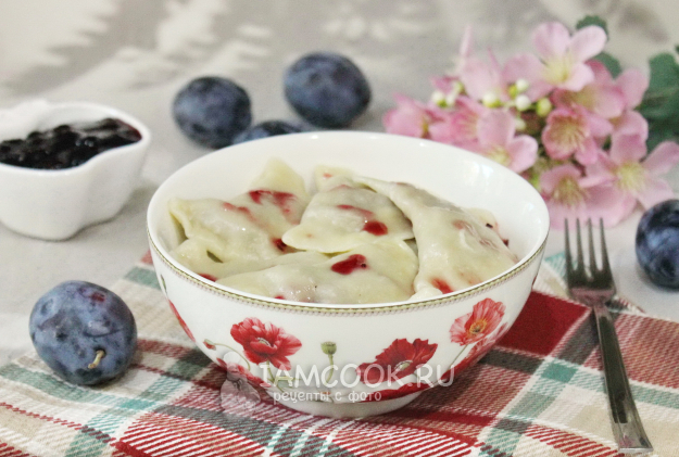 Вареники со сливой готовы. Подавайте с вареньем, джемом, медом.
