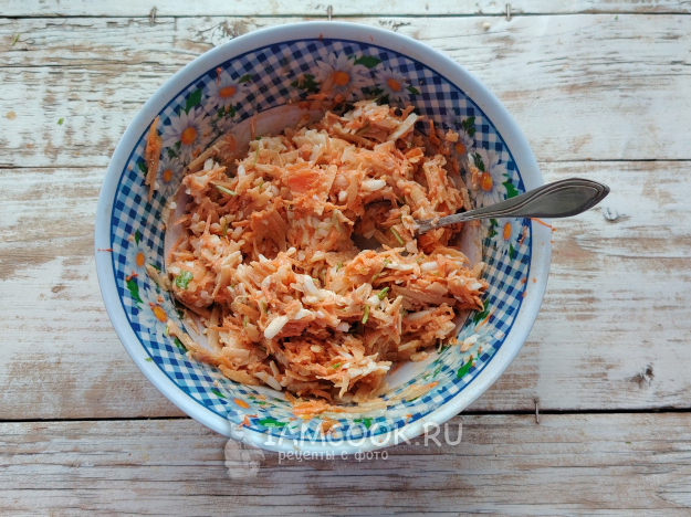 Морковь почистить, натереть на терке.