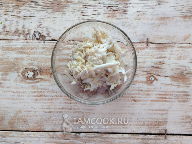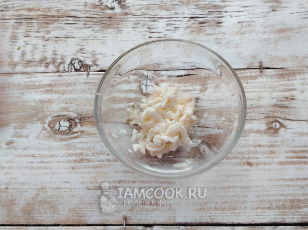 С плавленым сыром поступить так же. Чтобы он не прилипал к стенкам терки и получилась красивая стружка, сырок можно подморозить предварительно в морозилке.