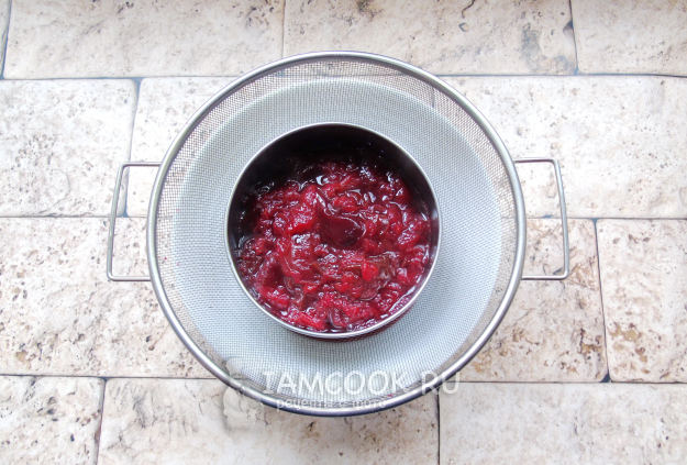 После сливовый отвар процедите. Я использовала дуршлаг и мелкое сито. Можно взять дуршлаг и марлю.