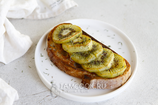 Подать киви можно на кусочке тоста или самостоятельно, например к творогу или домашнему йогурту.