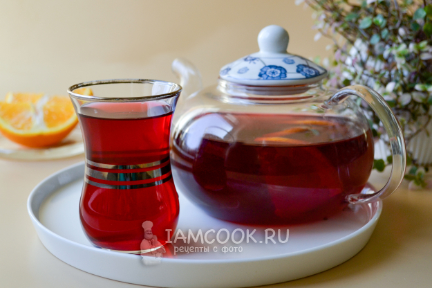 Приятного чаепития! По желанию в ледяной чай можно добавить сахар, мед. Мне чай понравился без подсластителей. Все ингредиенты так гармонично сочетаются: имбирь с корицей, сладкий апельсин с каркаде. Вкусно!