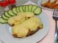 Добавьте полукольца помидоров. Посолите и сдобрите майонезом. Посыпьте натёртым сыром. Отправьте в горячую духовку на 180 градусов. Запекайте около часа.