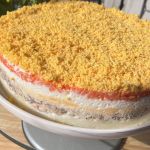 Теперь выложите тертый твердый сыр, промажьте майонезом.