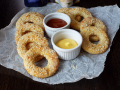 Кефир вылить в миску и добавить соду. Перемешать и оставить минут на 7-10. Кефир прореагирует с содой и вспенится.