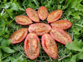 Для засолки лучше взять помидоры среднего размера. Они быстрее просолятся. Промойте и разрежьте пополам, не дорезая до нижнего края.