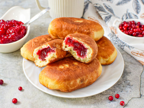 Пирожки с брусникой из дрожжевого теста на сковороде