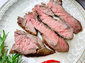 Свиная вырезка с перцем чипотле и бананами на гриле, под глазурью из бренди, мёда и крема-бальзамика