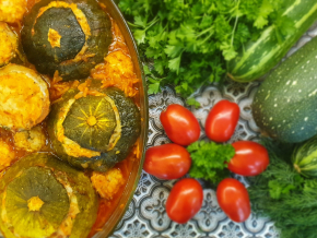Патиссоны и цукини, фаршированные рисом и фаршем