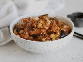 Фасоль с баклажанами в томатном соусе